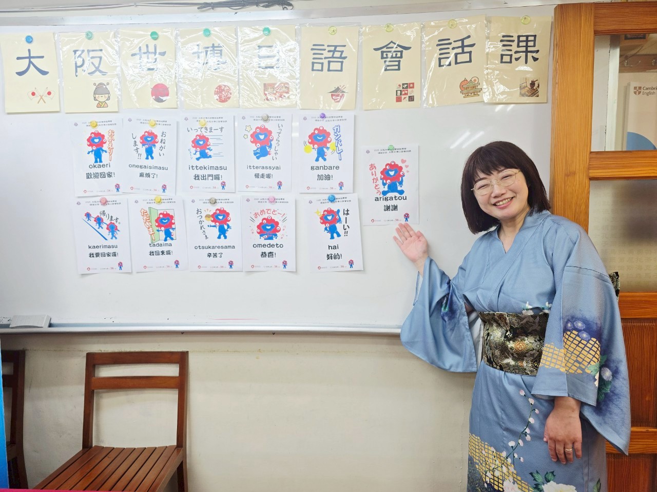 當老師身穿優雅和服走進教室時,孩子們彷彿來到日本!課堂宛如一場小小的文化旅程,老師親切教導「おはよう(早安)」「ありがとう(謝謝)」「がんばれ!(加油!)」等實用日語,並搭配說明語句在日本日常生活中的使用情境。