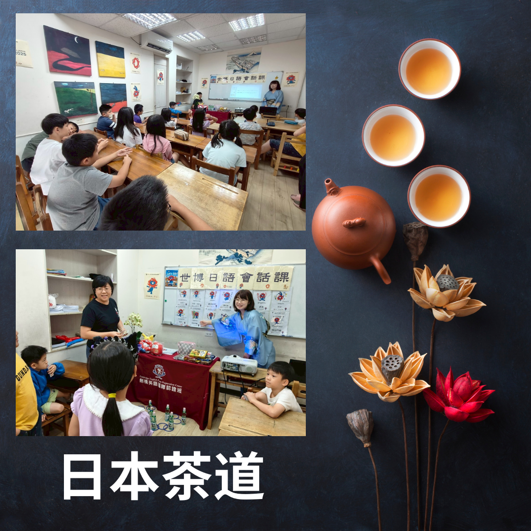 今天的日語會話課,在Amy老師的引導下,帶著孩子們展開一場跨越語言與文化的心靈交流。課堂開場,老師透過圖片與短影片介紹日本的茶道文化,並一一講解「茶碗(ちゃわん)」「茶筅(ちゃせん)」「茶杓(ちゃしゃく)」等專業用具的名稱與用途,孩子們一邊學單字、一邊感受日式茶道的優雅與靜謐。