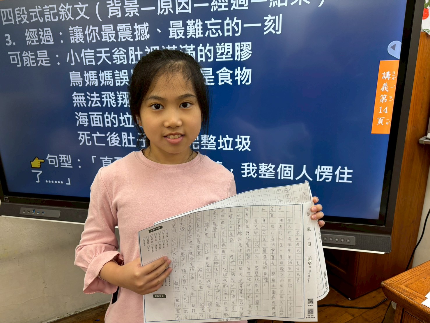 這本長達24頁的講義中,平均每堂課要完成約8頁寫作內容,對低年級孩子來說,確實是一項不小的挑戰。但孩子們一路堅持,終於順利完成,實在令人佩服。