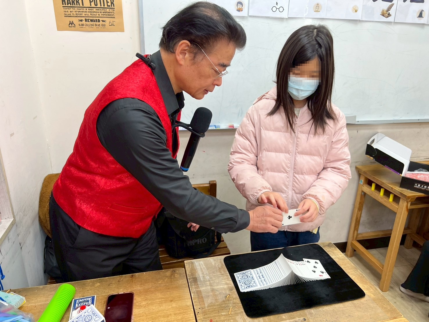今天老師特別帶來「緞帶展牌」的進階魔術表演,開場時炫技十足的手法,讓整個魔術層次瞬間升級。孩子們看得目不轉睛,也更加期待後續的學習。