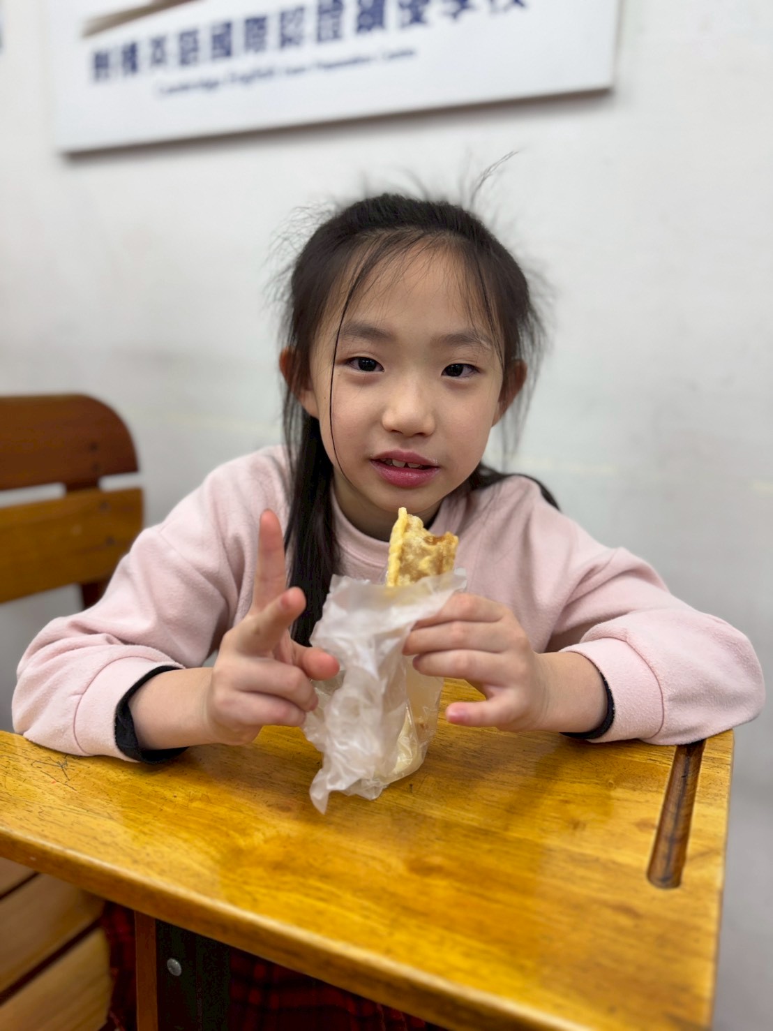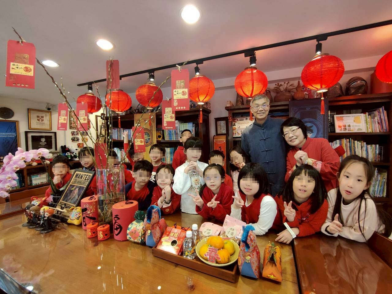 走進教室,處處洋溢著濃濃年味。花瓶與窗戶上貼滿老師們親手剪製的春福窗花,木門上張貼著春聯與斗方,而教室門口,更成為孩子們書寫文化與品格的展演舞台。門楣上方高掛著「知書達禮」橫批,象徵以禮立身、以書養心、以知成長;兩側則張貼著學生親手書寫的春聯:「滿園桃李都當作自己家人」、「一樹蓓蕾莫道是他人子弟」,字裡行間流露出尊師重道、彼此關懷的生命教育精神,也展現孩子們在書寫中體會「知書達禮」的實踐成果。